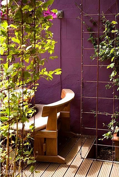 A középpontban elhelyezett asztalról a kert minden szegletébe ellátni. A köré felhúzott növényfuttató rozsdás acélból készült, a régiesebb és természetesebb hatás érdekében. Az erre felfuttatott iszalagok, loncok és ötlevelű akébiák már az első évben szépen mutatkoztak, rikító színű, vidám virágaik a kert látványos elemeivé váltak. A futó- és kúszónövényekre a gyors növekedés jellemző, napfényes, szélárnyékos területeken már az ültetés évében igen sokat növekszenek.